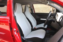 新型アルトは乗降性が良くなった。直角に近いまで大きく開くドアに加え、運転席シートの座面高をやや高くすることで、重心移動の少ない自然な姿勢で乗り降りできるようになったからだ。