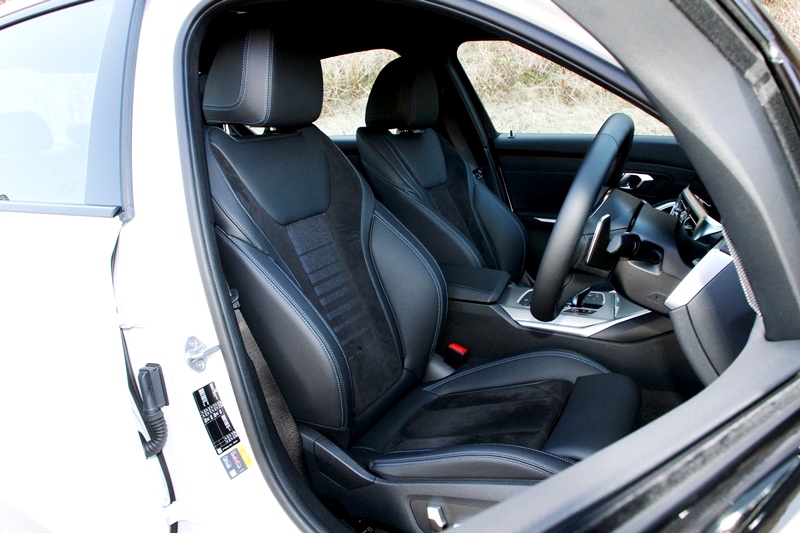 ハンドリングもスポーティな味わいだ。Mスポーツは引き締められたスポーツサスペンションにインチアップしたタイヤの組み合わせだ。これは、330eであっても変わらない。