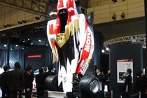 お邪魔したグループMさんのところでも、その片鱗を感じさせていただきました。展示部品はカーボンパーツの一部ですが、皆さんはドライとウェットの2種類があるのをよくご存じかと思います。では、インフュージョンという製法はご存知でしょうか? 実は筆者もこの日初めて聞かされました。これは原型にカーボンシートを張り合わせて硬化するところまではウェットと同様ですが、そこに硬化するシートを張り付けて真空抜きするといった方法だそうです。まあ平たく言えば、布団圧縮袋みたいなものを想像いただければいいそうです。これにより従来よりも薄くかつ硬度の高い状態で、しかもドライカーボンのような高価にならずに作れるとのことです。