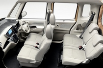 スペース系ということもあり、eKワゴン同様に後席スペースは広い。後席のニールームは761mmとクラストップレベル。この広さは、ちょっとしたコンパクトカーを凌ぐ広さだ。その広さをより楽しめるように、この高い室内高を生かし、後席のヒップポイントを全席より60mmアップ。後席を高くすることで、前方の視界を確保し、シアターシートの感覚でより解放感のある視界を確保している。後席は左右分割シードで、260mmのロングスライドが可能。このスライド幅もクラストップレベル。色々なシートアレンジが可能だ。