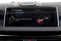 BMW X5 xDrive40eには、3つのドライブモードが用意されている。AUTO eDrive/MAX eDrive/SAVE Batteryと呼ばれるモードをeDriveボタンを使って切り替える。AUTO eDriveは、電気モーターとガソリン・エンジンが最適なバランスで高効率に連動するデフォルトの走行モード。時速約70kmまではゼロ・エミッション走行が可能となり、時速70km以上の速度、または250Nm以上のトルクが必要になると、自動的にガソリン・エンジンが始動。MAX eDriveは、時速120kmまでの速度域で、電気モーターの駆動力のみでゼロ・エミッション走行が可能。ドライバーによるキック・ダウン操作、またはスポーツ・モードに選択した場合には、エンジンが始動する。SAVE Batteryバッテリーの電力を使わずにガソリン・エンジンの駆動力で走行する。現状のバッテリー残量の低減を抑えるとともに、エンジン・ブレーキ回生システムが運動エネルギーを電力に変換し、バッテリーの充電量を最大50%まで増やすことが可能だ。