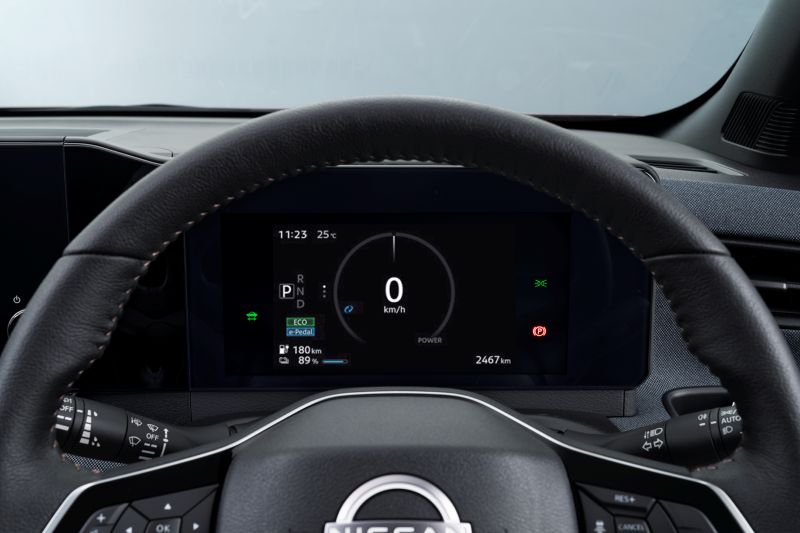 そして、XとGグレードの装備差はとにかく大きい。Xには装備されておらず、Gに標準装備されている主な装備は、統合型インターフェースディスプレイや6スピーカー、EV専用NissanConnectナビゲーションシステム、ETC2.0ユニット(ビルトインタイプ)、15インチアルミホイール、プロパイロット、プロパイロット緊急停止支援システム(SOSコール機能付) 、ニーエアバッグ〈運転席〉、ロードリミッター付プリテンショナーシートベルト〈後席〉、その他内外装の素材やカラーにも違いあり。