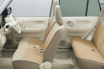 インテリアは、「わたしの部屋」がデザインコンセプト。ぬくもりのある明るいベージュの内装トリムと合わせ、くつろげる空間を演出している。Xグレードでは、シート色を車体色に応じて選択可能とし、自分好みのインテリアに仕立てることもできる。