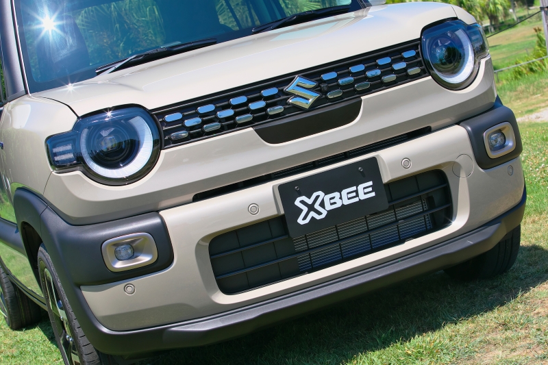 初代クロスビーの可愛らしい丸型ヘッドライトは、流行りの半円形型とし、ちょっと精悍さをプラスしている。