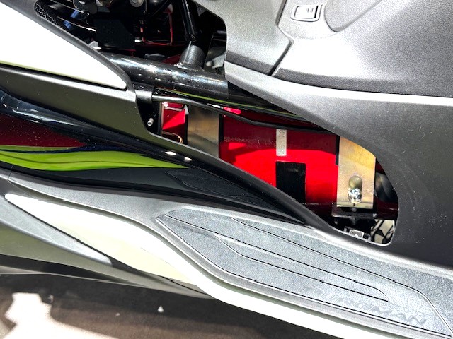 「バイクの楽しさのひとつである、排気音を楽しみながらも環境に配慮した乗り物に乗りたい」を叶えるモビリティとして水素エンジンの搭載車の開発を進めている。前回のJMSでも参考出品していたが、今回のモデルは進化が分かるようにカットモデルも映像で紹介されていた。