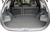 5名乗車時で535リッターの空間を確保するラゲッジルーム。7人乗りの場合荷室はミニマムだが、床下には容量60リッターの大型デッキボードを装備し、大型スーツケース(68cm)やA型ベビーカーを立てて収納出来る空間を確保した。