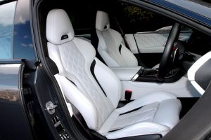 試乗車にはオプションのカーボンパッケージが採用されておりリヤスポイラーやフロントなどのカーボン部品が追加され、スポーティ度が増している。さらに、車体の色がグレーであり、大きなボディと相まって、存在感が半端なく強い。