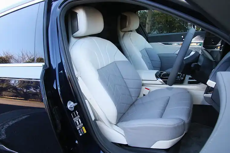 新型i7の自動ドアは、タクシーを連想させる。タクシーは左後部だけだが、新型i7はすべてのドアが自動で開閉可能だ。センサーにより、狭いスペースでも、適切なドアの開放角度を保持する。「至れり尽くせり」とはこのことだ。