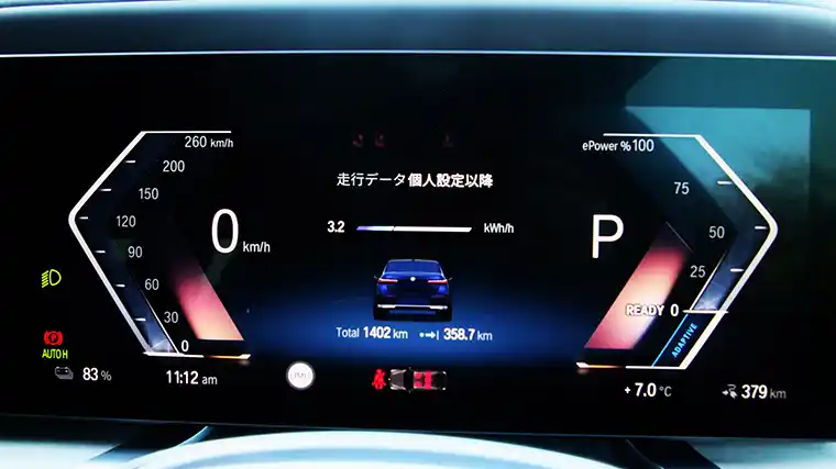 新型i7は高速道路で電費が伸びるタイプ。BMWのBEVは、総じて街中より高速道路での電費が伸びる制御になっているようだ。高速道路での移動が多い人には、ピッタリな仕様といえる。