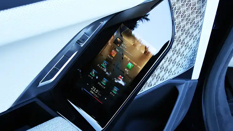 トレンドを上手く捉えていたのが、左右のリヤドアに設置された操作系パネルだ。デザインは、スマートフォンのようで、タッチ操作が可能だ。シートのリクライニングなど様々な操作が可能となっている。
