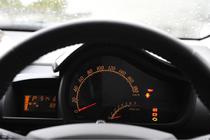 メーターはオレンジの文字色で、視認性にも優れている。燃料計の脇には平均燃費などを表示可能なディスプレーを装備。