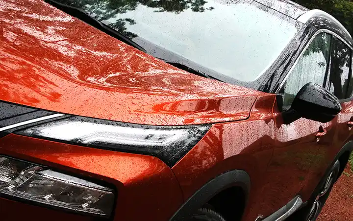 また、売れるデザイン要素を上手くアレンジして多用している。ボンネットのラインを水平に近くすることで、フロントフェイスを大きく見せている。大きなフェイスいっぱいに日産のデザインアイコン「Vモーショングリル」を埋め込んだ。大きくて迫力のあるフェイスは、売れるSUVデザインの鉄板的手法だ。