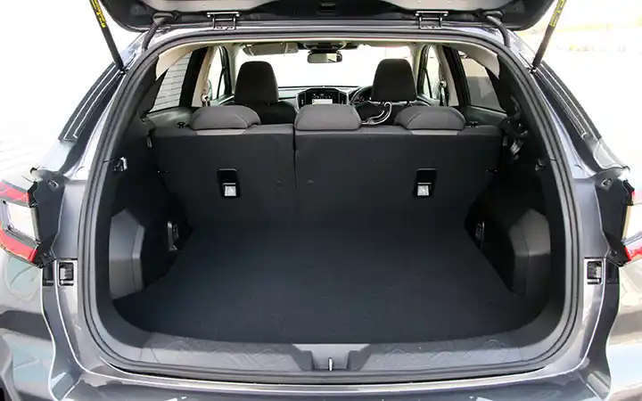 e-BOXERを搭載したインプレッサの荷室容量は315Lだ。一方のカローラスポーツはハイブリッドモデルでも352Lとインプレッサを上回っている。さらに、4:2:4分割アジャスタブルデッキボードを用意し、乗せる荷物に応じて荷室床面の高さを2段階に調節可能と、利便性の高さが光る。